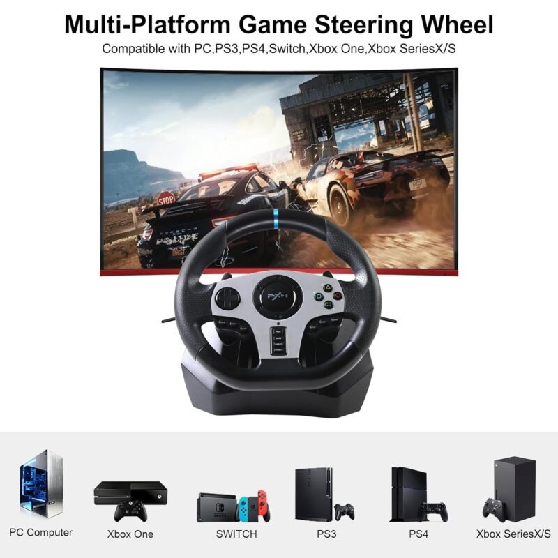 - STRONG COMPATIBILITY:Compatible with Xbox One / PC / PS3 / PS4 / Nintendo Switch (Please note that when using with XBOX ONE or PS4, you need to connect the racing wheel with the original XBOX ONE Controller or the original PS4 Controller. The XBOX ONE / PS4 Controller needs to be turned off when connected )