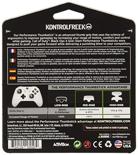 Evoking the forceful nature of Ruin from Call of Duty: Black Ops , the Grav Slam Performance Thumbgrips were designed to meet ergonomic and performance needs specific to Black Ops gamers. It features one high-rise thumbstick (11.2 mm) for improved shooting accuracy and one mid-rise thumbstick (7.0 mm) for extra grip and comfort. This creates a strategic combination that improves range of motion by 120% and allows you to maximize controller sensitivities for quicker, more precise in-game movements.
